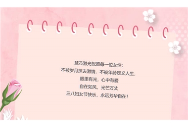 指尖生花,点亮美好 慧芯激光妇女节专属浪漫, 致每一位闪闪发光的她! 春风送暖,万物芳华。